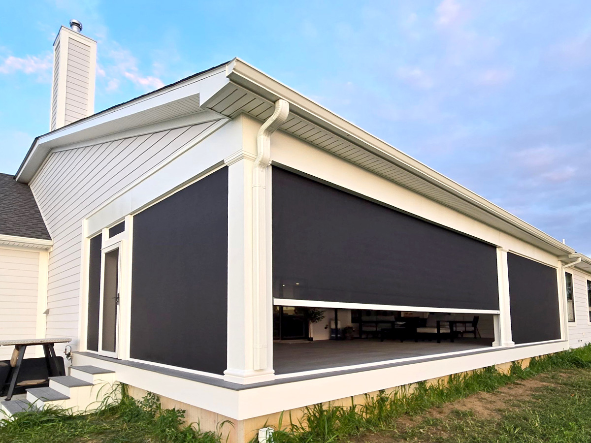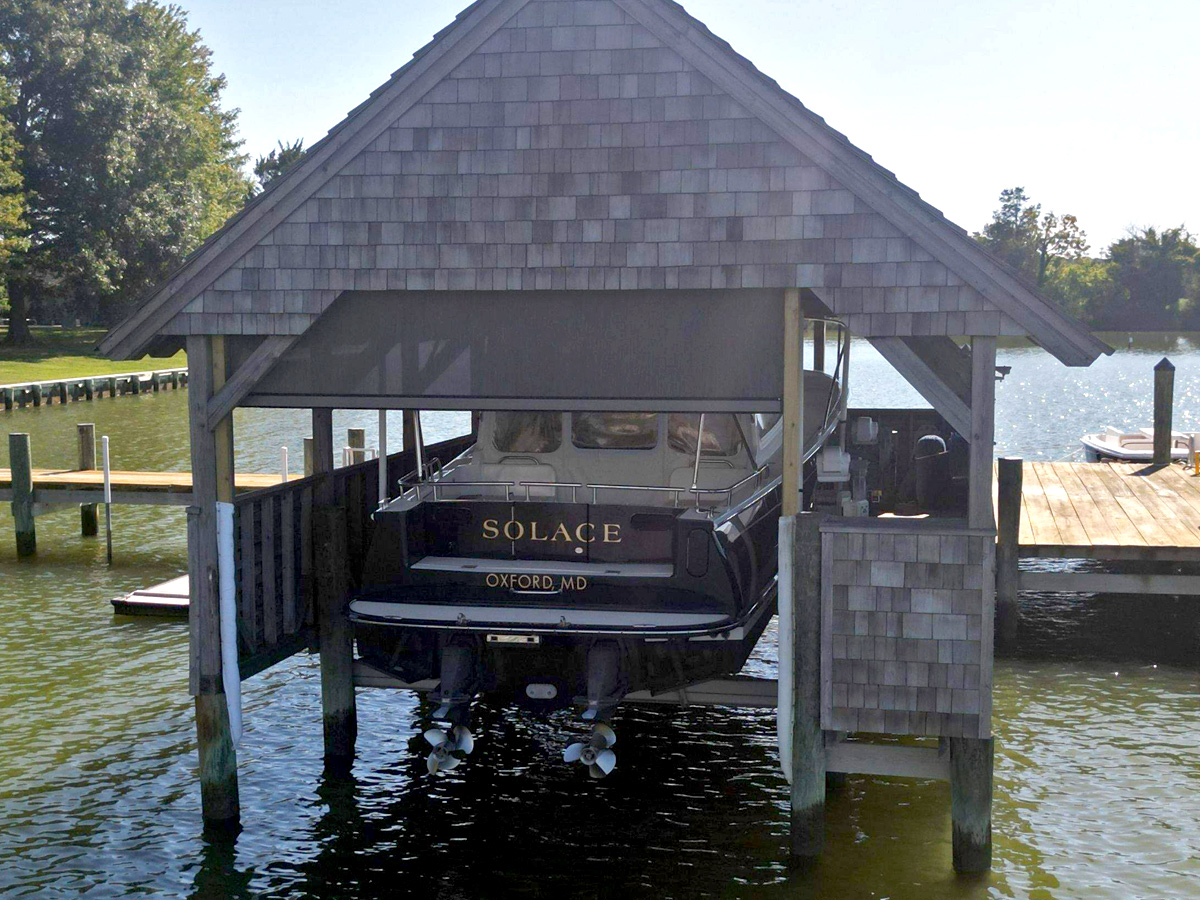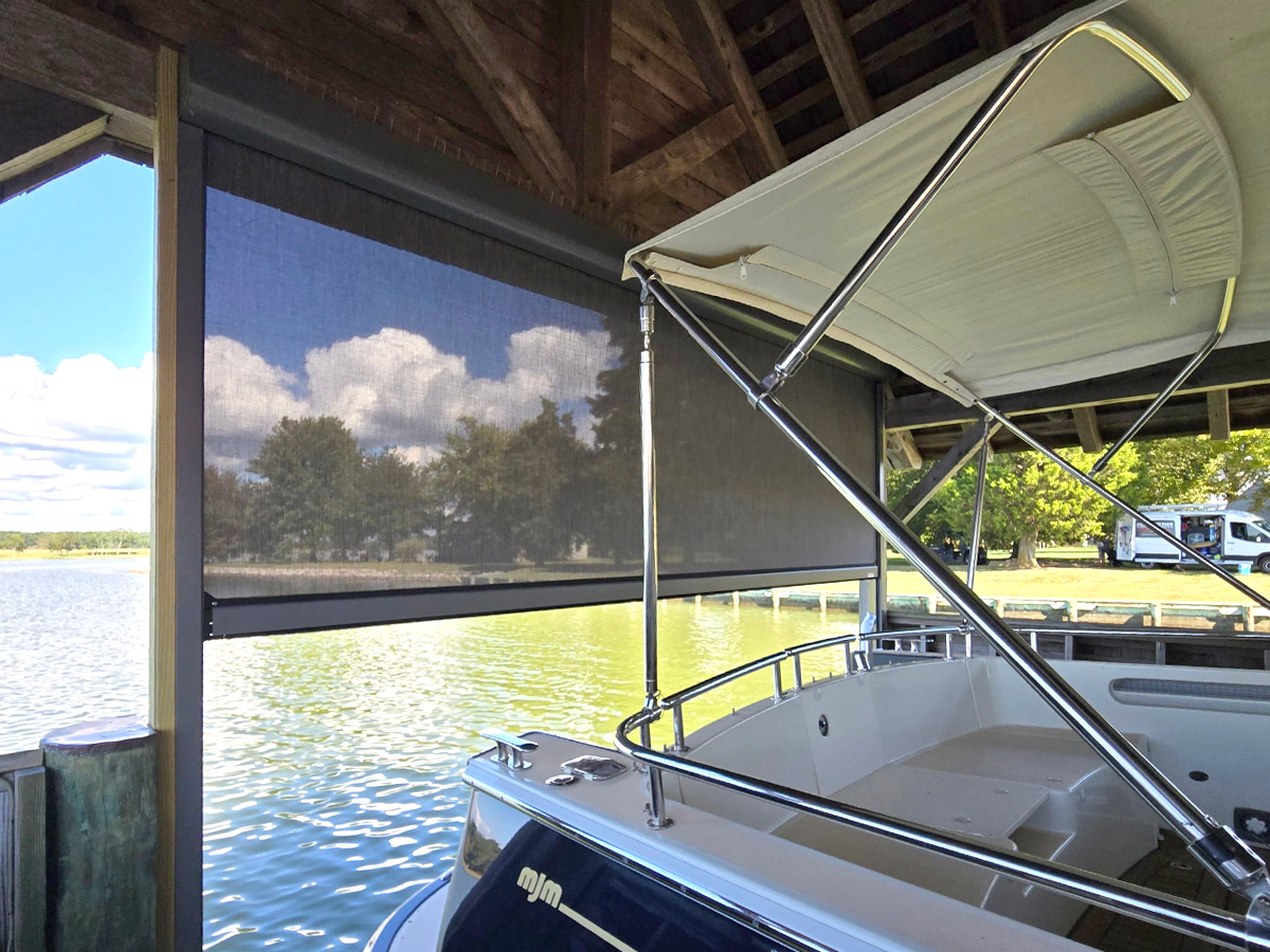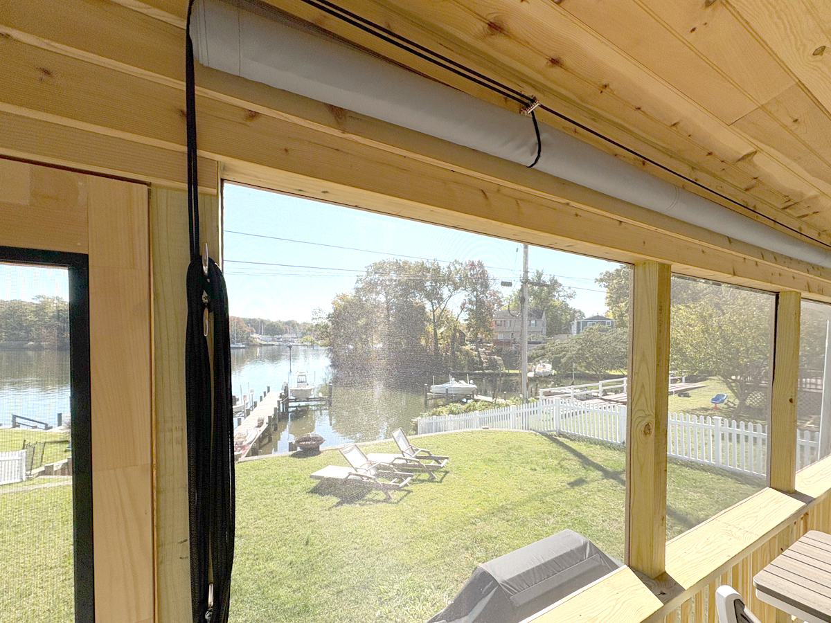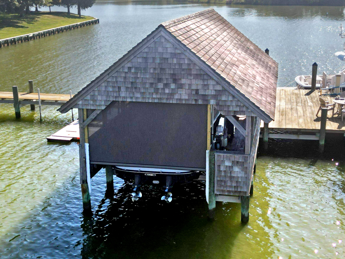 Retractable Powered Screen for a Boathouse in Oxford, MD.