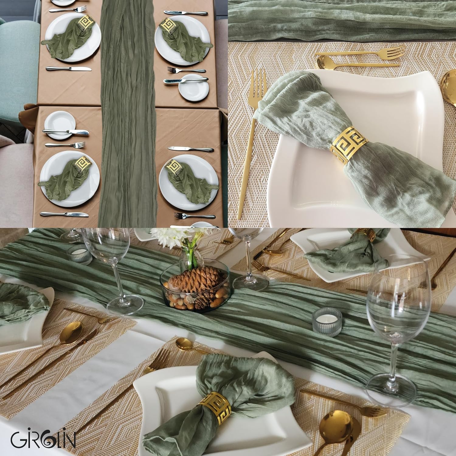 | Included Components | Cheesecloth table runner, Napkins, Rings |