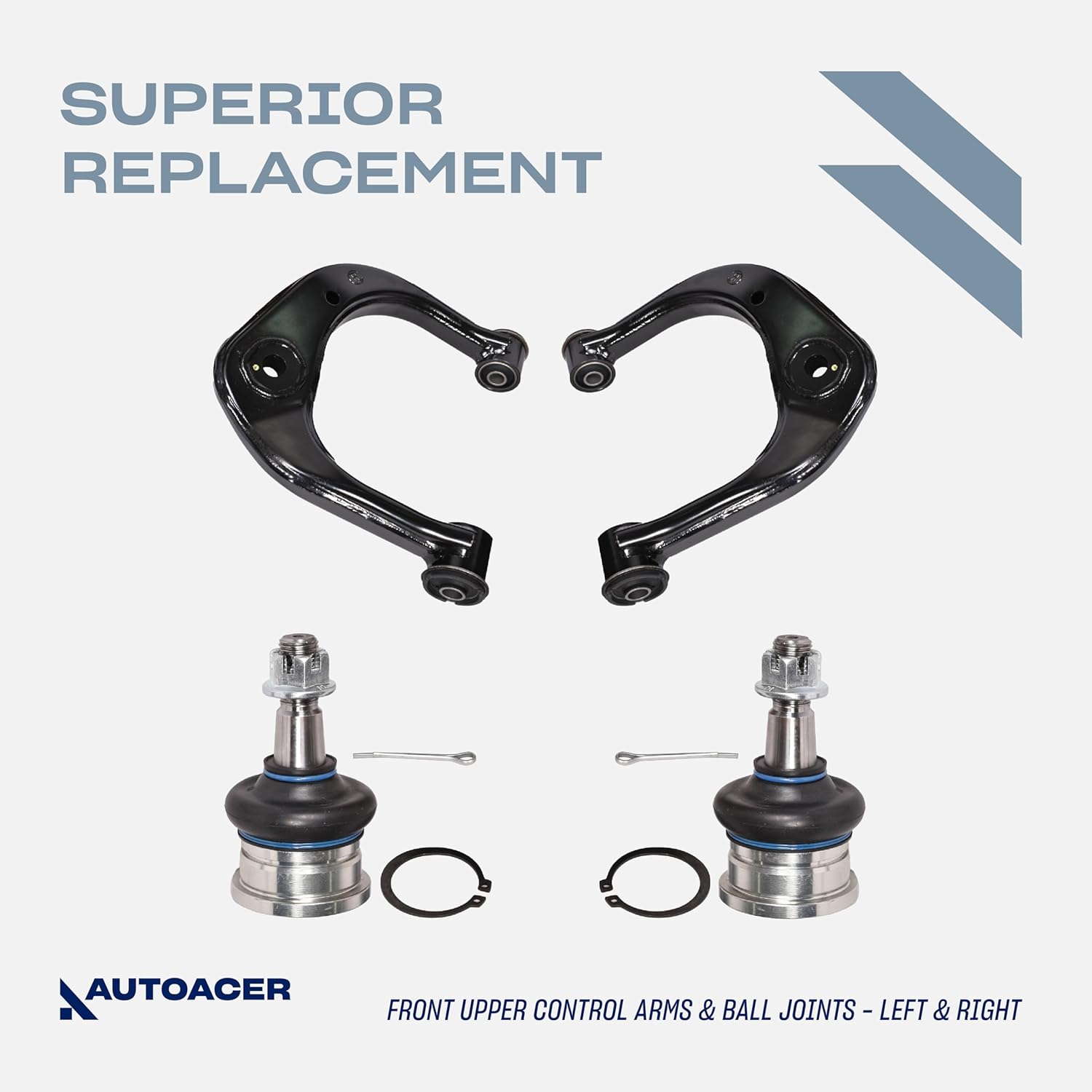 "This AUTOACER 10-piece front suspension kit is designed for Tacoma 4WD models from 1995 to 2004 and PreRunner 2WD models from 1998 to 2004. It is built as a direct replacement for factory-installed parts, maintaining compatibility with OE/OEM part numbers including 48632-35080, 48061-35040, 48061-35050, 48069-35120, 48068-35120, 48610-35030, 48630-35010, 48061-35020, 43340-39286, 48069-04011, 43330-39367, K90255, 43310-39016, and 486310-35030. The kit comes with a 2-year manufacturer warranty provided by AUTOACER. The suspension kit is made from aluminum, steel, and rubber materials. It does not include a cotter pin hole and has an overall item length of 17 inches. It is not a vintage part and is designed for placement at the front of the vehicle, including left, right, upper, and lower positions. Included in the kit are 2 front upper control arms, 2 front upper control arm ball joints, 2 front lower control arm ball joints, and 4 front lower control arm bushings. Each part is manufactured to meet direct replacement requirements, making it suitable for restoring the suspension system. The kit is intended for installation by a professional mechanic. Specialized tools such as a hydraulic press and ball joint press are required to properly remove and install bushings and joints. During installation, it is important to clean all mounting points and ensure bolts are tightened to the manufacturer’s torque specifications. A wheel alignment is required after installation to ensure proper suspension geometry. This kit is compatible with Tacoma 4WD models manufactured between 1995 and 2004 and PreRunner 2WD models manufactured between 1998 and 2004. It is not compatible with Tacoma 2WD base models for the same years, for which a separate kit is available. AUTOACER provides a 2-year warranty along with customer support from an American company, offering reliability and service assistance for buyers."