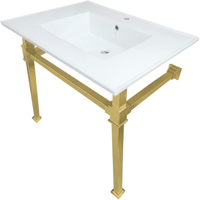 With a beautiful ceramic counter top, this console sink set is a long lasting, durable, and elegant addition to your bathroom. Solid ceramic sinks and tops like the LBT-series top in this listing are finished with a glossy glaze on the top and sink basin interior, making for a pristine, stain-resistant surface and glistening finish that is easily maintained. The underside and basin exterior are unglazed/unfinished and coated with a matte white protective sealant that prevents moisture absorption and staining. Solid ceramic pieces cannot be glazed on all sides, because the nature of ceramic material requires a minimum surface area be left raw during the glaze firing process so the piece does not explode. Also for your convenience, anti-slip rubber pads are included with the stainless steel legs to ensure steadiness. Water supply kit, drain assembly, and the faucet are sold separately.