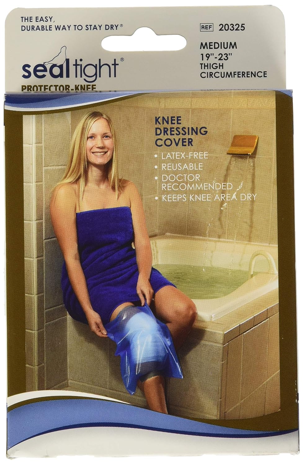 Seal-tight cast and bandage covers stop water from getting into a cast or the skin of the broken bone. It comes in a size medium and is durable. It is stretchable which makes it comfortable to wear. It also helps people using it shower or take a bath.