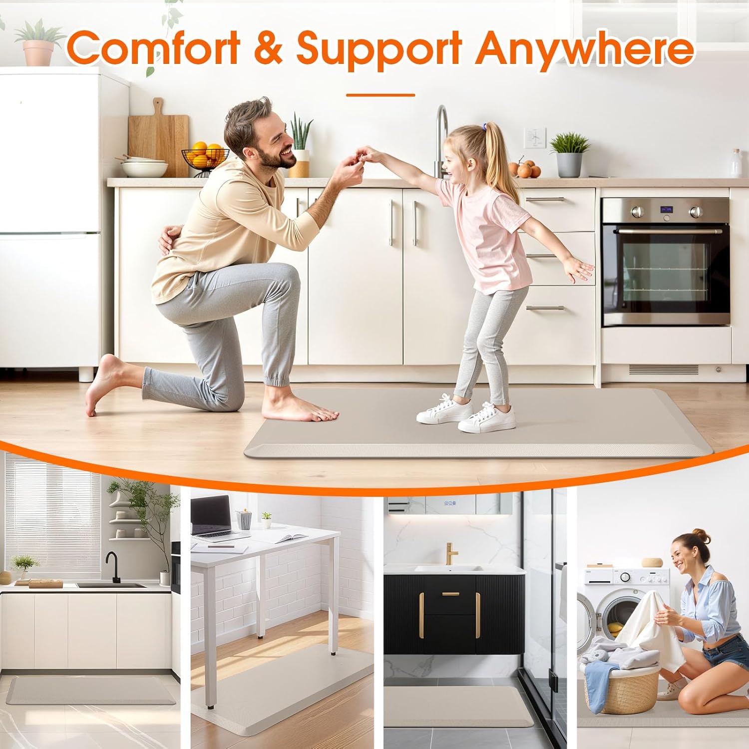 TranquilRelax Extra Large Kitchen Mat Rug, Floor Comfort Mat with Non-Slip Bottom, Waterproof & Stain Resistant & Easy Clean, Standing Desk Mat for Kitchen, Sink, Office (17.3''x39'', Khaki)